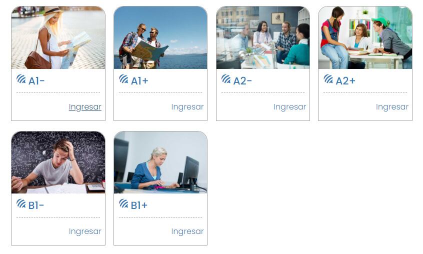 En cada nivel la persona realizará un examen de colocación para conocer el dominio del idioma. Se debe recalcar que este apartado se llama ‘evalúate’.
