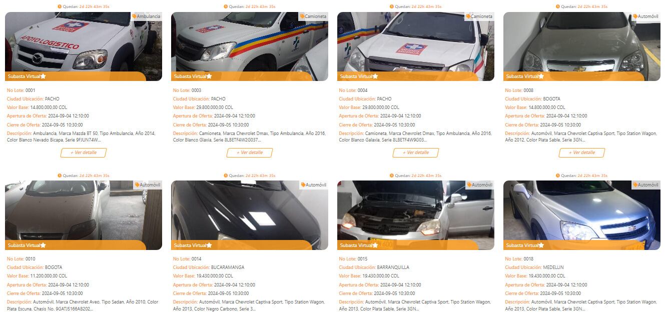 La entidad menciona que la subasta de la lista de los ocho vehículos que están disponibles se iniciará este 4 de septiembre y finalizará el 5 de este mismo mes.