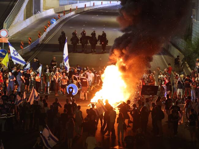 Miles de personas se manifestaron y bloquearon este martes 3 de septiembre el tráfico en la calle Begin de Tel Aviv, por tercer día consecutivo, demandando al Gobierno de Israel un acuerdo de tregua con Hamás que permita la liberación de los cautivos en Gaza.