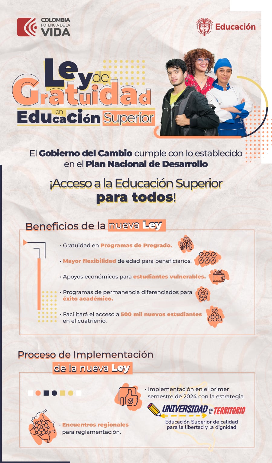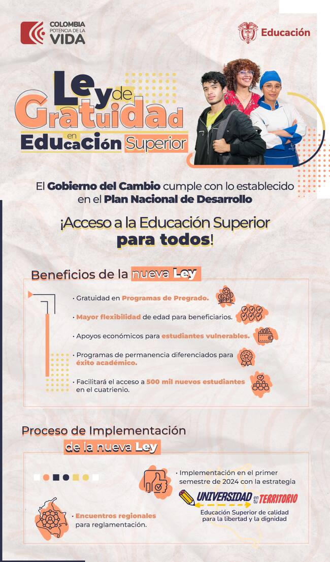 El programa Matrícula Cero es una iniciativa aprobada por el Gobierno de Colombia, que busca que miles de jóvenes de todo el país puedan acceder a la educación superior de manera gratuita en más de 60 instituciones universitarias, técnicas y tecnológicas. Este programa fue sancionado por el presidente de la República, Gustavo Petro, el pasado 1 de agosto, a través de la Ley 2307 de 2023.