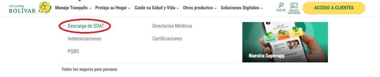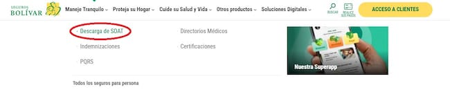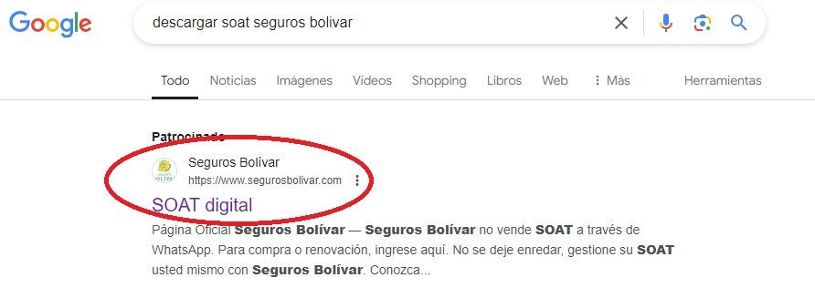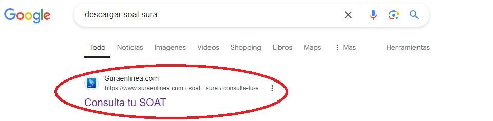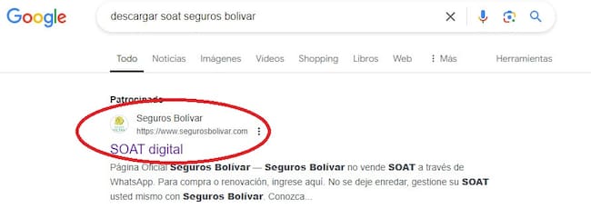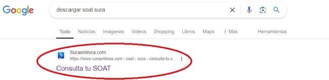 - Luego, deberá ingresar a internet y escribir ‘descargar SOAT (colocar el nombre de la aseguradora)’, por ejemplo, Suramericana, Allianz, Seguros Bolívar.