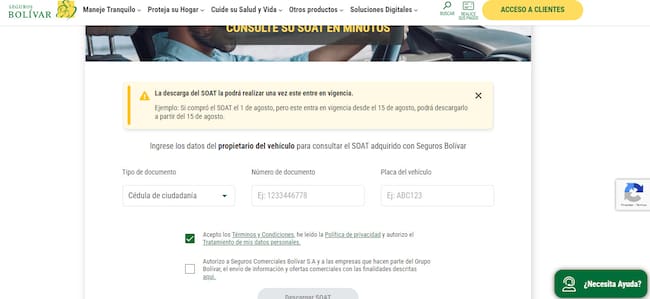 En el caso de Sura, por ejemplo, una vez le dé en consultar, el documento del SOAT se le descargará automáticamente.