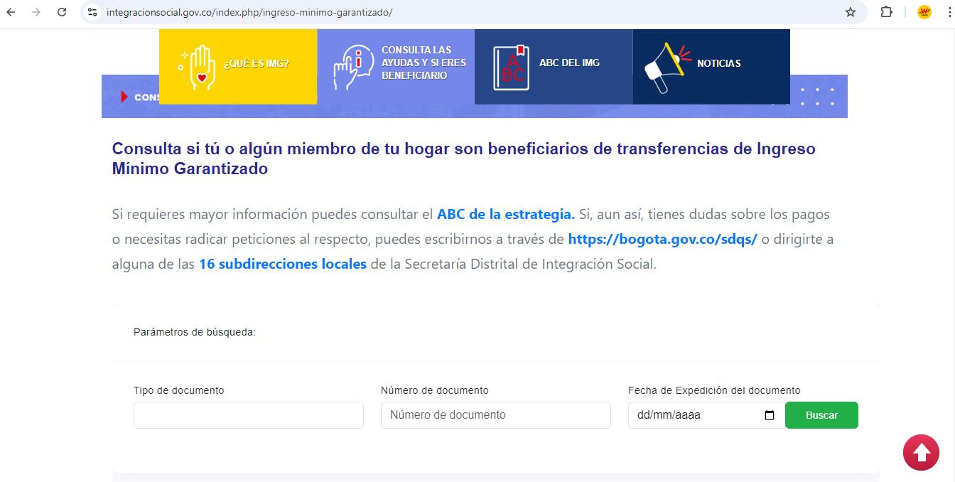 - Para saber si usted es beneficiario deberá ingresar a este link: https://www.integracionsocial.gov.co/index.php/ingreso-minimo-garantizado/