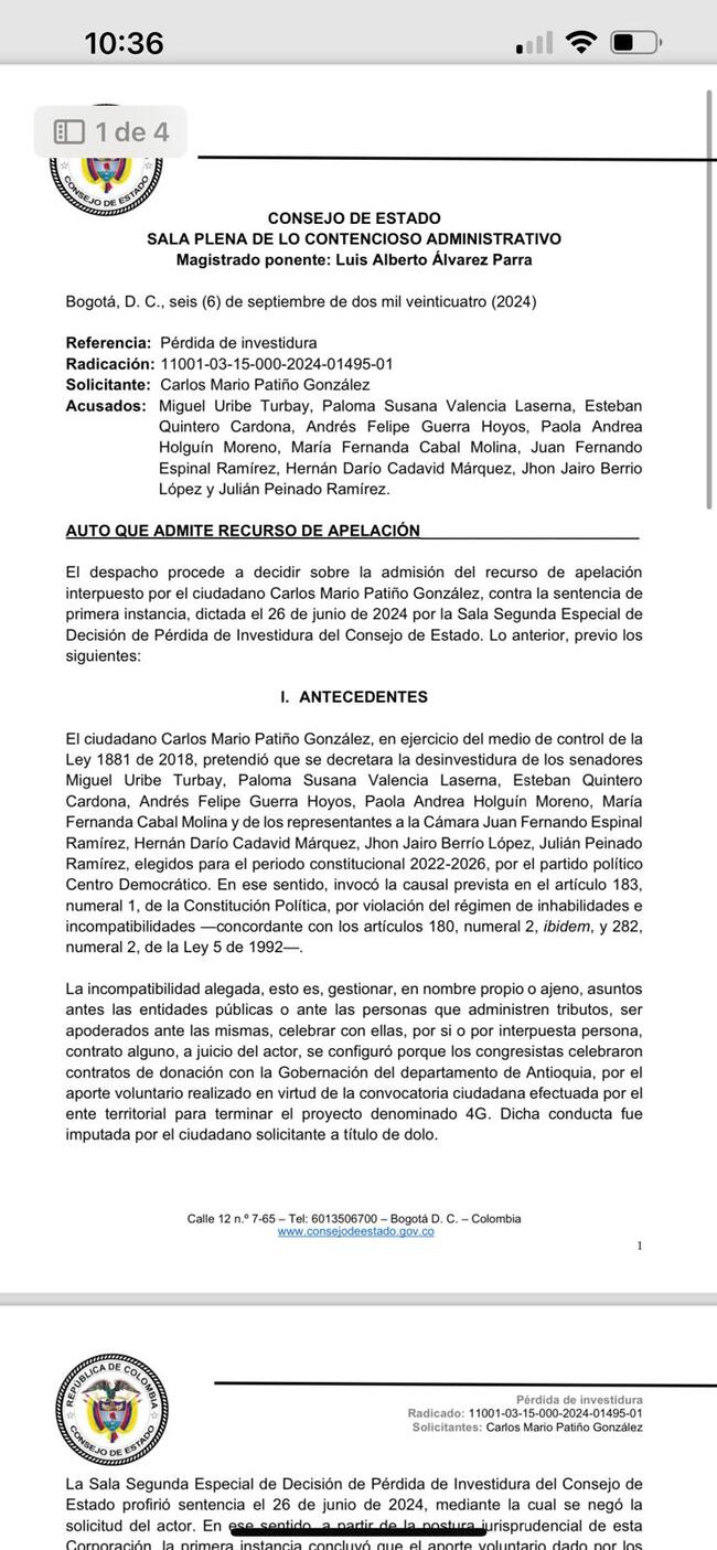 Este concepto fue enviado al Consejo de Estado, que evalúa la apelación contra la decisión de primera instancia que mantuvo la investidura de los congresistas, argumentando que no se demostró que estos actuaran en beneficio propio o de terceros.