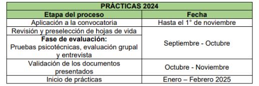 La convocatoria, que finaliza el 1° de noviembre de 2024, está dirigida a estudiantes de programas técnicos, tecnológicos y profesionales de diversas disciplinas. Los detalles se pueden consultar a través de los siguientes enlaces del portal de empleo de Ecopetrol: