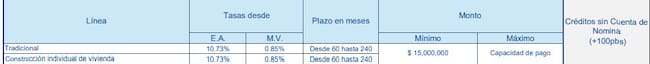 - “Aplicará la tasa vigente al momento del desembolso. Tu asesor brindará esa información”, explican.