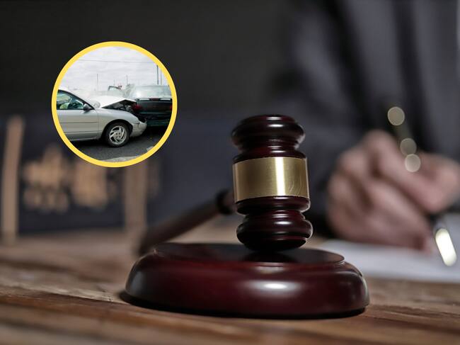 Imagen referencia de un juez, encima accidente de tránsito (GettyImages)