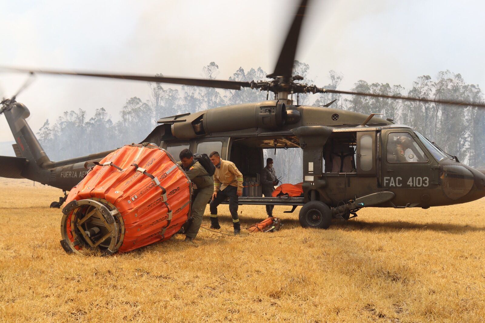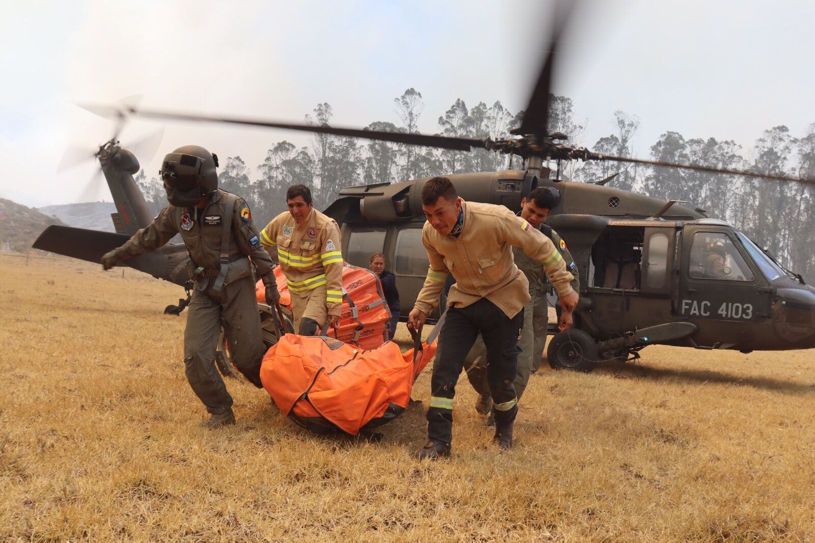 El Ministerio de Defensa registra seis aeronaves en operación, cuatro de la Policía y dos de la Fuerza Aérea, para atender veintidós incendios activos. Un total de 77 uniformados, entre miembros de la Policía y del Ejército, se movilizan junto a 340 unidades de la Defensa Civil.
