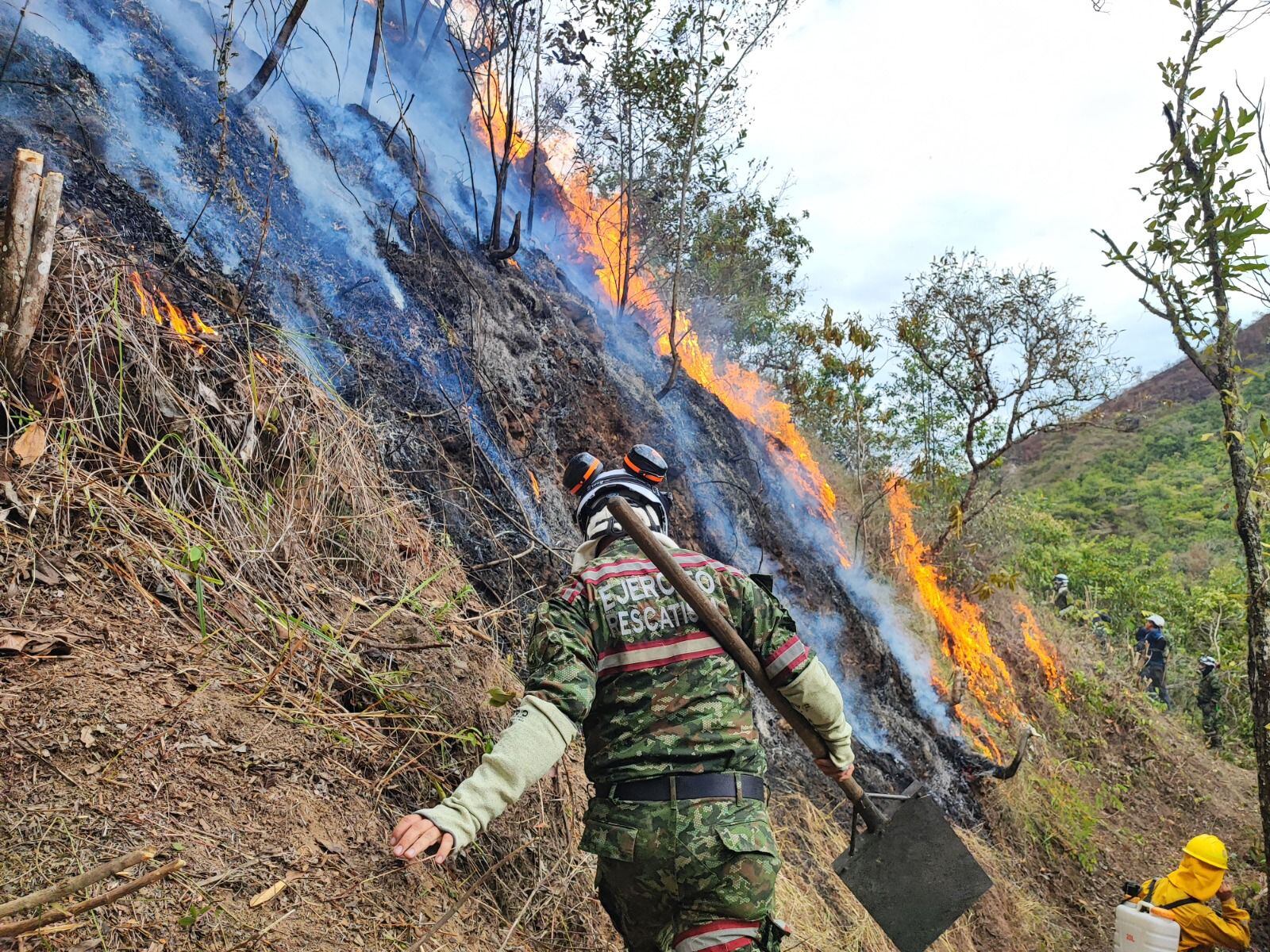 Las llamas han crecido rápidamente debido a las altas temperaturas y los fuertes vientos, amenazando con consumir varias hectáreas de un ecosistema en el que convive el campesinado con la fauna y la flora. El Ejército ha desplegado veinticinco uniformados y la Fuerza Aérea ataca diversos focos.