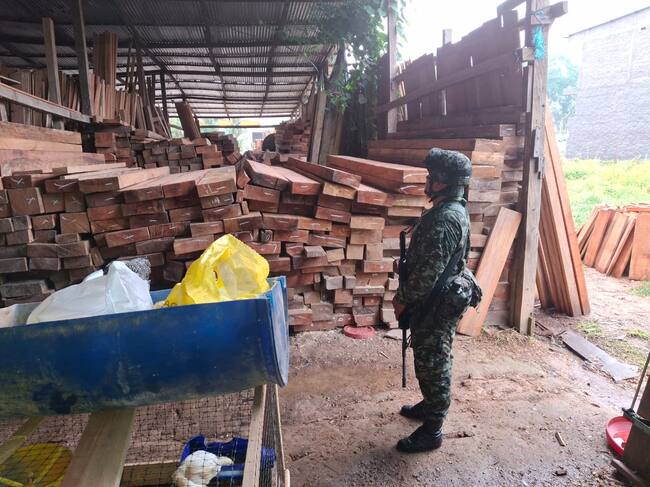 “Entre los capturados se encuentran alias ‘Serafín’ y alias ‘Dora’, cabecillas de esta estructura criminal. También se detuvo a alias ‘Yamit’, responsable de financiar y falsificar los salvoconductos para el transporte ilegal de la madera, y a alias ‘Omar’, encargado de la logística y contratación del personal para la talla ilegal”, detalló Torres.