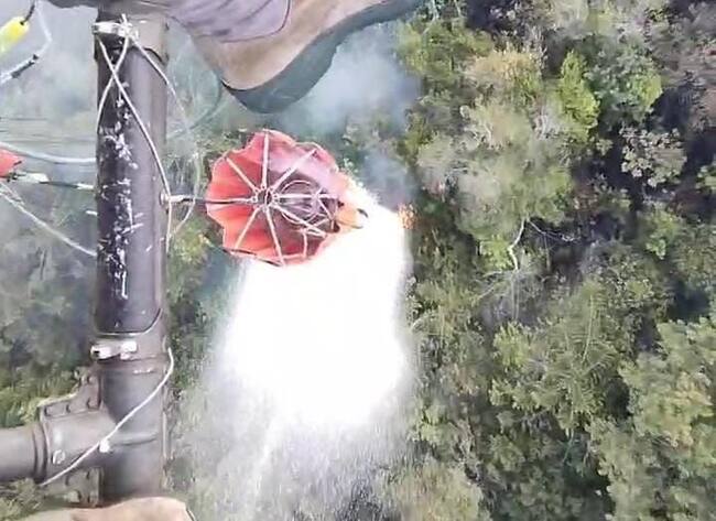 Con un sistema Bambi Bucket y personal entrenado en operaciones especiales, tras aproximadamente tres horas de vuelo se logró enviar desde el aire más de 2.700 galones de agua y siete de líquido retardante.
