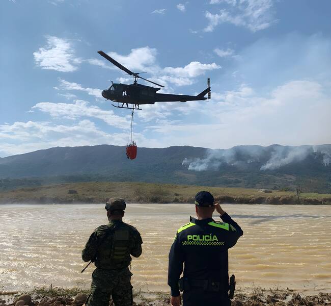 En Natagaima, Tolima, una región priorizada por la Unidad de age el helicóptero UH-60 Black Hawk de la Policía Nacional ha lanzado cerca de 56 mil galones de agua. En Cundinamarca se han controlado cuatro incendios forestales en Tocancipá, Guayabal de Síquima y Pandi.