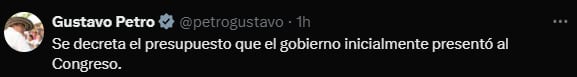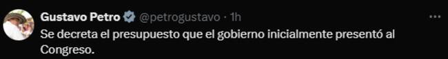“Se decreta el presupuesto que el Gobierno inicialmente presentó al Congreso”, afirmó Petro.