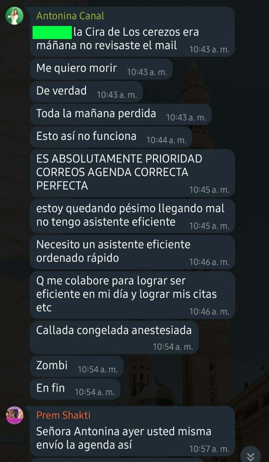 En redes sociales a la academia la muestran como un lugar de sanación femenina, pero por chats que la W Radio tiene en su poder se ve que, al parecer, Antonina se refiere a sus trabajadoras como zombies u orangutanes. Como estas denuncias, ya hay una que reposa en el Ministerio de Trabajo y en redes se pueden encontrar numerosos testimonios.