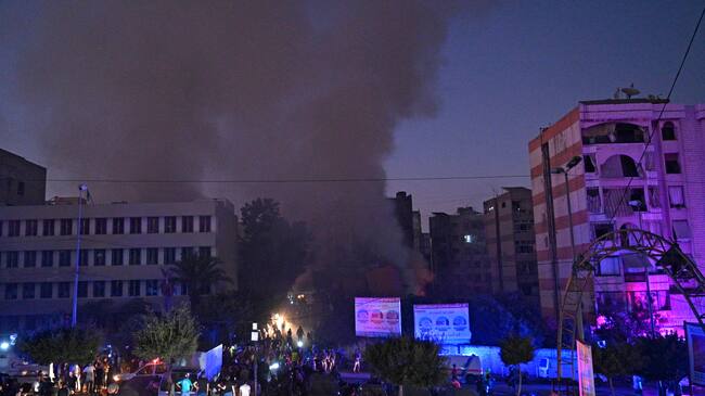 Fuertes explosiones resonaron por toda la capital y poblaciones adyacentes, y enormes columnas de humo se pudieron ver elevándose desde la zona a grandes distancias, algo que no había ocurrido con ninguno de los seis bombardeos perpetrados contra la zona desde el inicio de los choques.