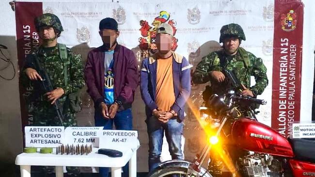 Las capturas se lograron en una vía que conduce al corregimiento Aguas Claras, municipio de Ocaña, Norte de Santander, gracias a la alerta de la comunidad, quienes dieron a conocer que en horas de la madrugada habían dos sujetos con actitud extraña en el corredor vial.