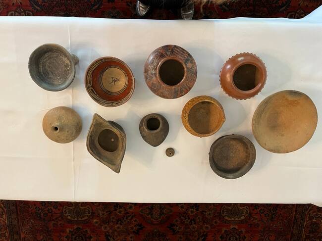 Respecto de la colección anónima entregada a la embajada en marzo de 2024 se destaca que varias de ellas fueron identificadas como parte del patrimonio arqueológico nacional.