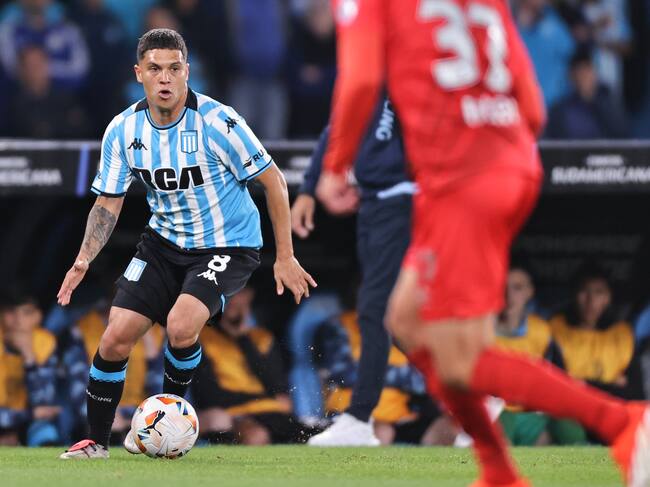 Juan Fernando Quintero de Racing controla un balón este jueves, en el partido de vuelta de cuartos de final de la Copa Sudamericana entre Racing y Paranaense en el estadio Presidente Perón en Avellaneda (Argentina). EFE/ Juan Ignacio Roncoroni / JUAN IGNACIO RONCORONI (EFE)
