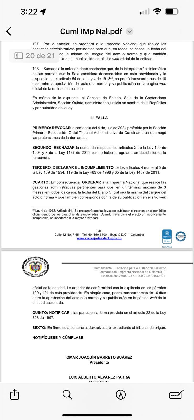 El Consejo de Estado le ordena a la Imprenta Nacional de Colombia cumplir su deber de organizar y administrar el Diario Oficial