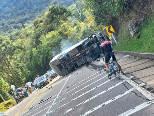 Un bus que transportaba estudiantes de veterinaria de la Corporación Educativa Nacional (CEN) perdió el control y se volcó al costado izquierdo de la carretera.
