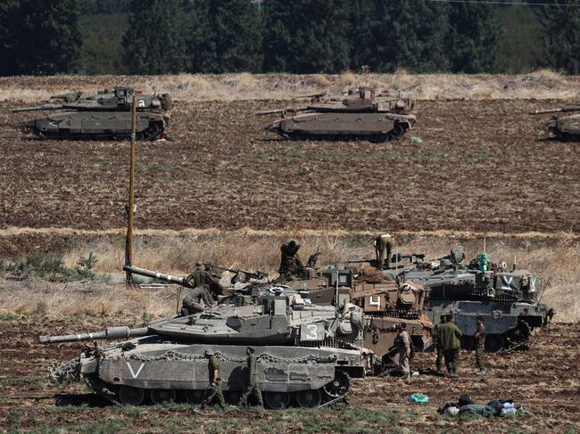 Undisclosed (Israel), 27/09/2024.- Israeli soldiers with their tanks gather at an undisclosed location in northern Israel, 27 September 2024. Israel's military stated on 27 September, that the Israel Air Force (IAF) launched dozens of strikes targeting Hezbollah cells and infrastructure in several areas in southern Lebanon. (Líbano, Hizbulá/Hezbolá) EFE/EPA/ATEF SAFADI / ATEF SAFADI (EFE)