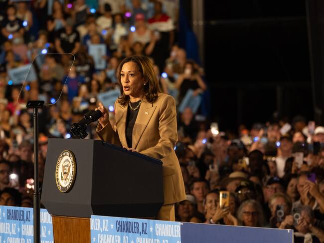 Chandler (United States), 10/10/2024.- Democratic presidential candidate US Vice President Kamala Harris speaks during a campaign rally at Rawhide Event Center in Chandler, Arizona, USA, 10 October 2024. (Elecciones) EFE/EPA/MOLLY PETERS / MOLLY PETERS (EFE)