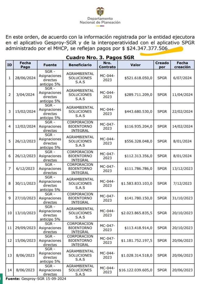 El DNP confirmó que ha congelado más de 12.000 millones de pesos que restan por desembolsar, y resaltó que uno de los aspectos más preocupantes es la falta de cumplimiento de los lineamientos del Sistema General de Regalías. Según el concejal Ramírez, se giraron 17.000 millones de pesos de anticipo directamente al contratista, sin pasar por una fiducia, lo que vulnera las normativas establecidas para garantizar el correcto uso de los recursos públicos.