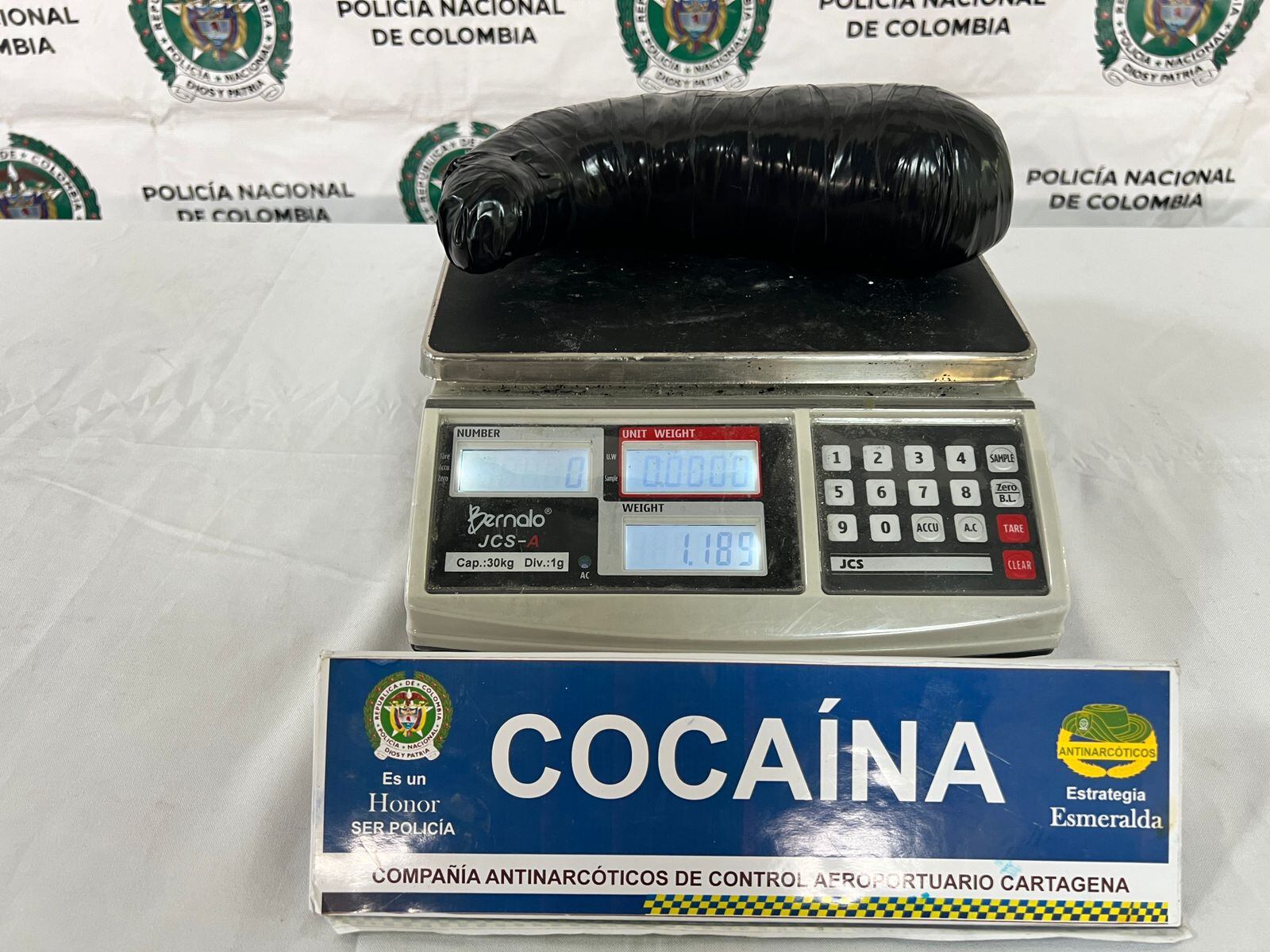 La Policía Metropolitana de Cartagena, con apoyo de la Policía Antinarcóticos, capturan a un ciudadano en el Aeropuerto Internacional Rafael Núñez, luego que se comprobara que llevaba consigo más de un kilo de cocaína en sus partes íntimas.