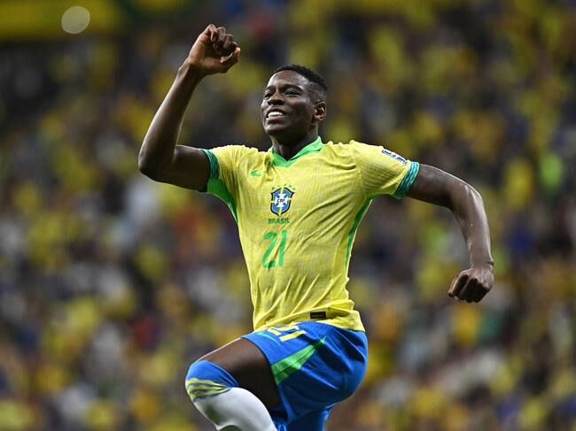 AMDEP8930. BRASILIA (BRASIL), 15/10/2024.- Luiz Henrique de Brasil celebra su gol este martes, en un partido de las eliminatorias sudamericanas el Mundial de 2026 entre Brasil y Venezuela en el estadio Mané Garrincha en Brasilia (Brasil). EFE/ Andre Borges