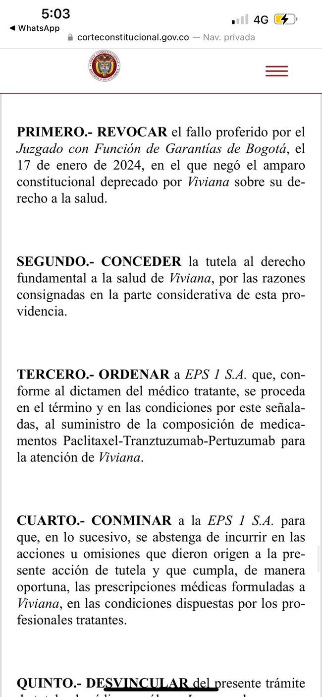 El alto tribunal reiteró que los datos contenidos en la historia clínica son confidenciales y ordenó una investigación interna en la IPS, así como una disculpa pública por parte de la Fundación. También dispuso que la IPS brinde apoyo psicológico a la afectada y realice capacitaciones para su personal sobre la importancia de mantener la reserva médica.