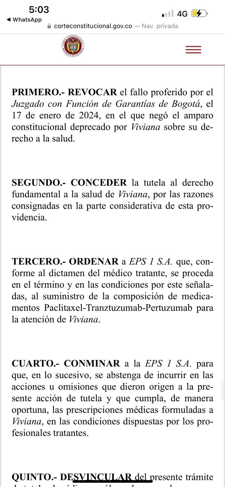 El alto tribunal reiteró que los datos contenidos en la historia clínica son confidenciales y ordenó una investigación interna en la IPS, así como una disculpa pública por parte de la Fundación. También dispuso que la IPS brinde apoyo psicológico a la afectada y realice capacitaciones para su personal sobre la importancia de mantener la reserva médica.
