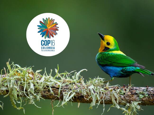 Tangara Multicolor y Logo de la COP16 (Getty Images)