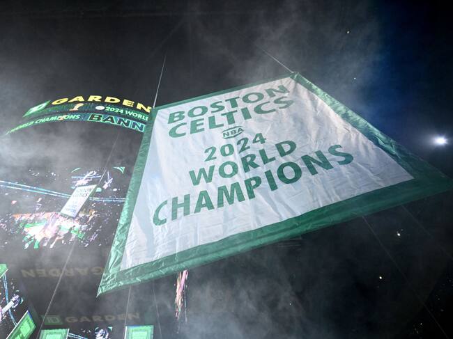 Poco después, el ‘banner’ con el título de 2024 subió lentamente hasta alcanzar su plaza en el techo del TD Garden, al lado de los demás 17 símbolos de la gloria de Boston.