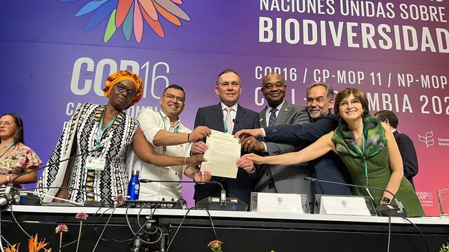 En el marco de un foro interparlamentario en la COP16 que se celebró en la ciudad de Cali, Jaime Raúl Salamaca y Efraín Cepeda, cabezas del poder Legislativo, junto a congresistas de Colombia y extranjeros, firmaron una declaratoria en la que se incluyen varios compromisos en materia ambiental.