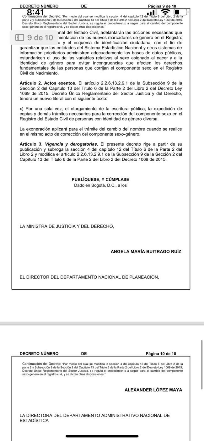 El Ministerio de Justicia, en cabeza del Gobierno Petro, prepara un decreto que permitirá cambiar el género en documentos de identidad.