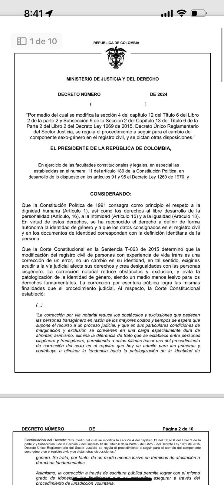 MinJusticia prepara decreto que permitirá cambiar género en documentos de identidad