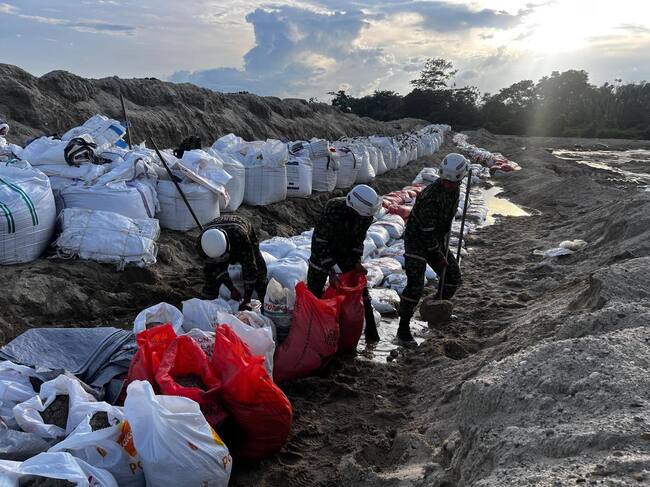 Allí más de 30 uniformados se encuentran desplegados y con herramientas para la gestión del riesgo vienen adecuando y construyendo una muralla de protección de 350 metros con el empleo de jarillones que permitan evitar que en caso de creciente de ese afluente, “pueda afectar a las familias que viven cerca. Así mismo han realizado el encauzamiento de cerca de 2500 metros del río empleando maquinaria amarilla en coordinación con las autoridades locales”, según el Ejército.