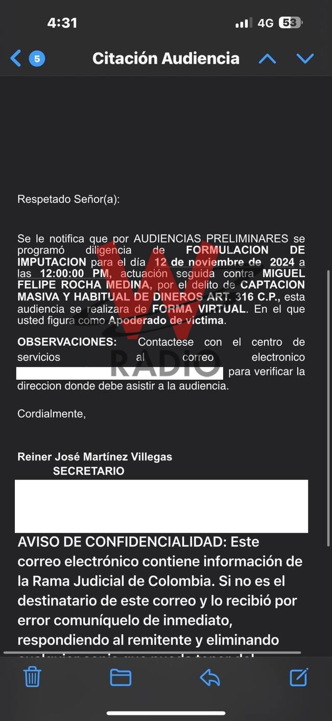 W Radio conoció en primicia que la Fiscalía General de la Nación le imputará el delito de captación masiva y habitual de dinero a Felipe Miguel Rocha Medina, presunto creador de la pirámide ganadera con la que habrían resultado afectadas decenas de personas en Colombia.