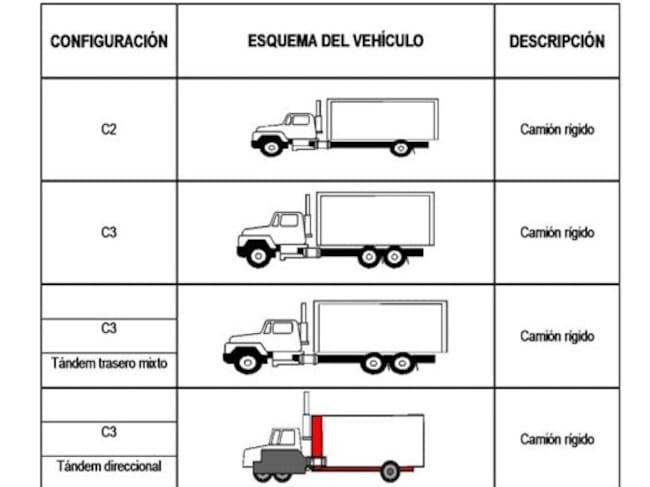 Según la norma, la clasificación de estos vehículos de carga se establece teniendo en cuenta su configuración basado en la disposición de los ejes.