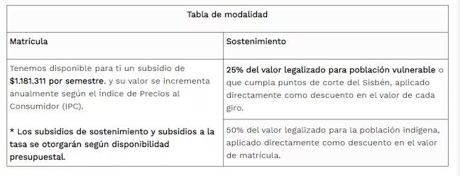 - Los beneficiarios de crédito educativo que modifiquen su condición a nivel de Sisbén o población vulnerable posterior a la fecha de adjudicación del crédito educativo no tendrán derecho a este beneficio.