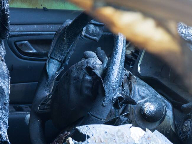 Imagen de referencia de un vehículo incinerado. I Foto: Getty Images. / Larysa Lyundovska