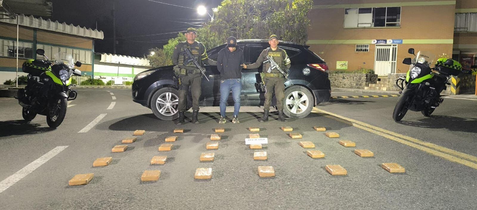 Mediante la modalidad “caleta”, a la altura de la llanta delantera derecha y muy cerca del motor del vehículo, encontraron ocultos 30 paquetes de base de coca con un peso aproximado de 30 kilos.
