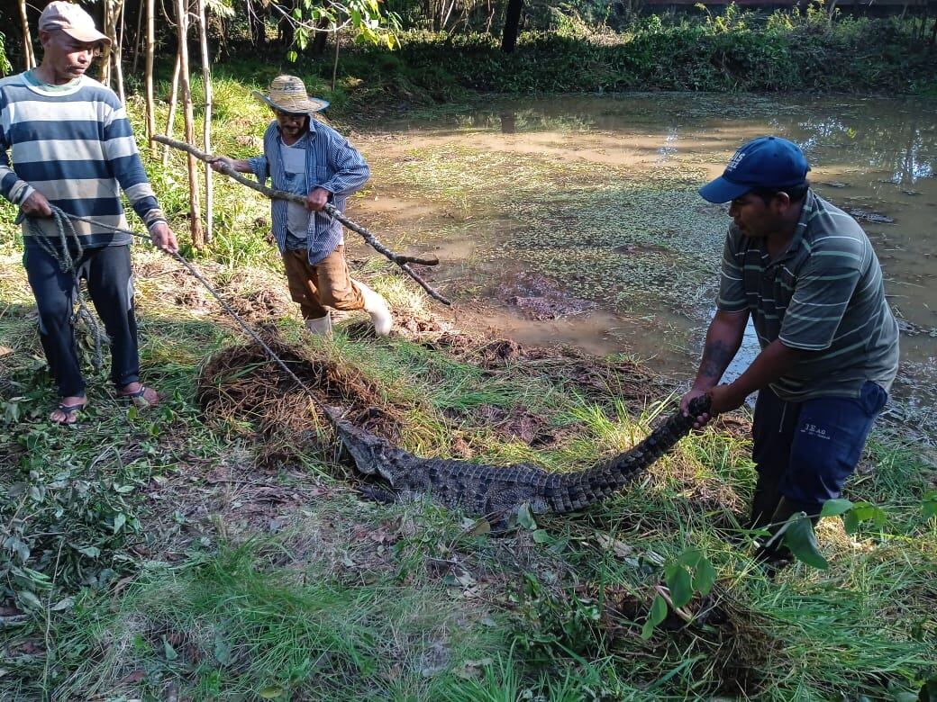 Recuperan tres de los 73 caimanes que se fugaron de una estación experimental en Sucre. Foto: prensa Corpomojana.