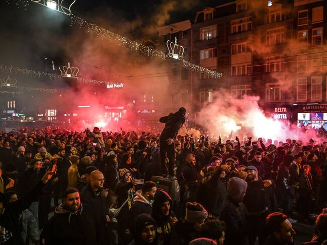 Desde por la tarde, un centenar de aficionados israelíes se había reunido en la plaza de Dam del centro de Ámsterdam, rodeados por un gran dispositivo policial, antes de dirigirse al estadio Johan Cruyff, en el suroeste de la ciudad.