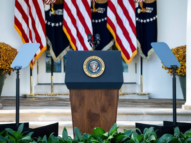Washington (United States), 07/11/2024.- A view of the empty Presidential podium after US President Joe Biden delivered remarks on the results of the 2024 presidential election. EFE/EPA/GRAEME SLOAN / GRAEME SLOAN (EFE)