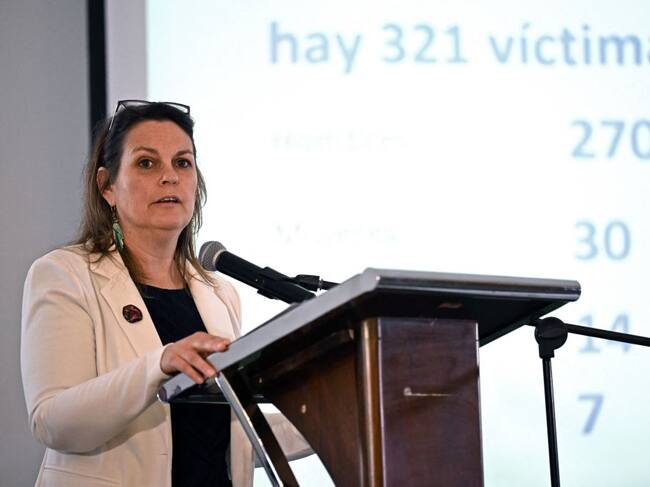 The United Nations High Commissioner for Human Rights representative in Colombia, Juliette de Rivero, speaks during the presentation of the annual report on the situation of human rights in Colombia, in Bogota on March 3, 2023. (Photo by Raul ARBOLEDA / AFP) (Photo by RAUL ARBOLEDA/AFP via Getty Images) / RAUL ARBOLEDA