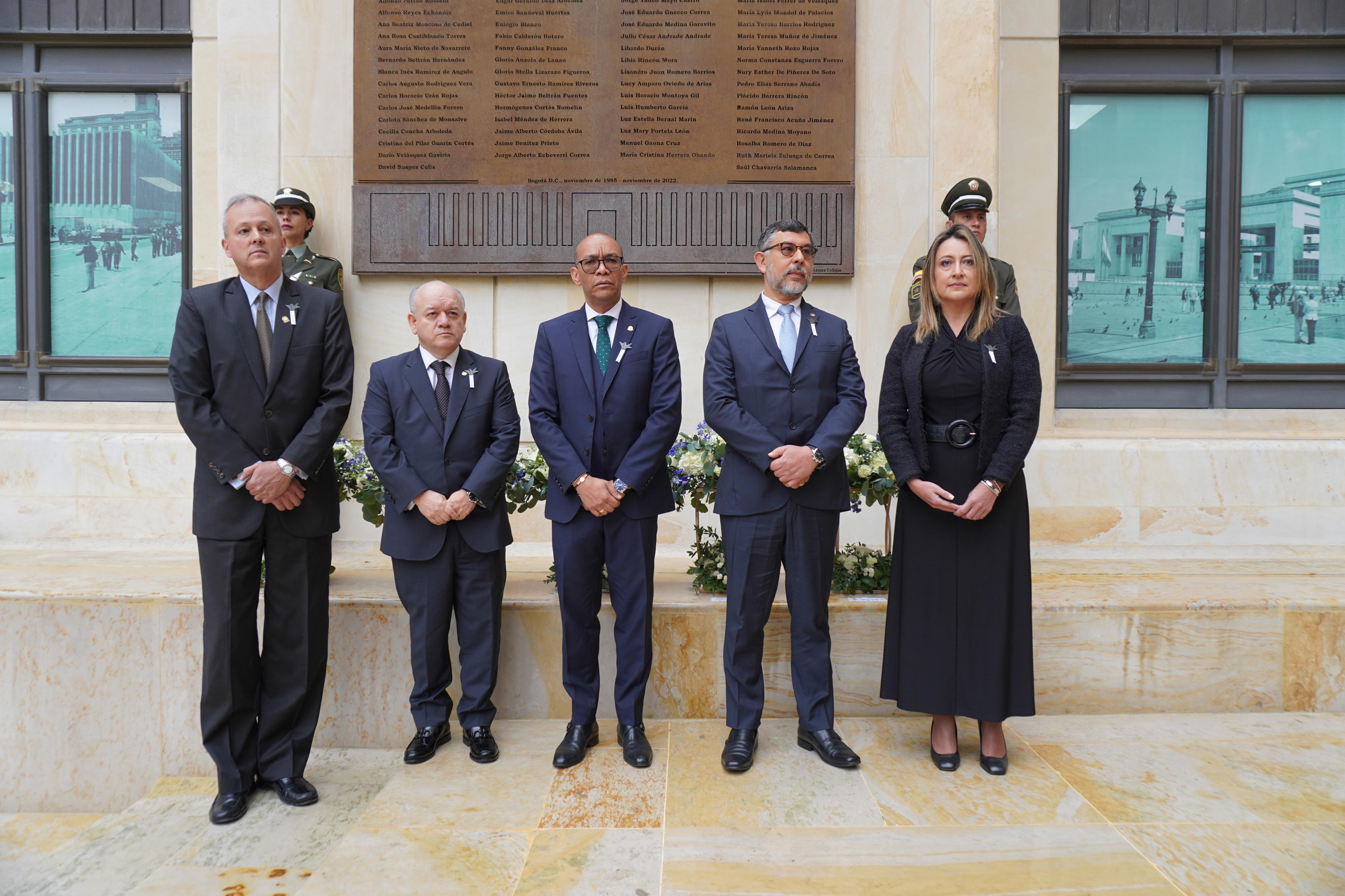 Hizo énfasis en el sacrificio de los magistrados que perdieron la vida y en cómo los ideales de justicia, dignidad y verdad que defendían deben seguir siendo la base de una convivencia pacífica y respetuosa en Colombia.