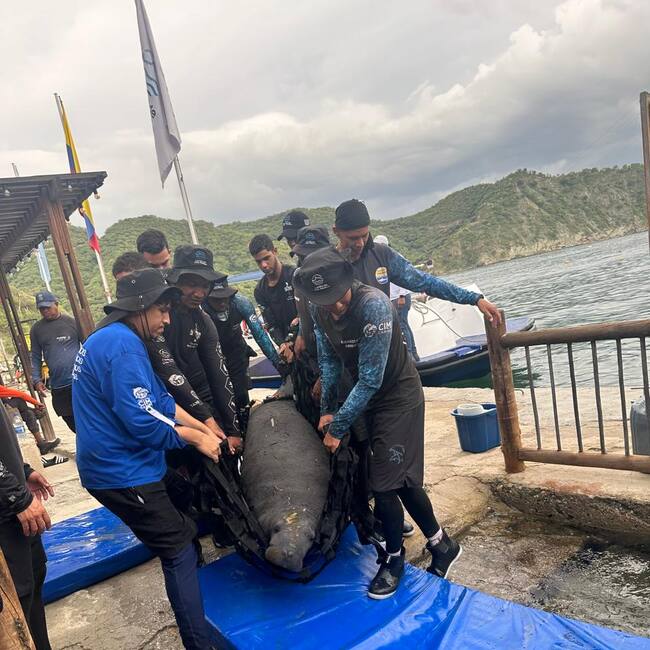 “Fuimos informados de la presencia de un Manatí en las piscinas de alimentación de la termoeléctrica, inmediatamente acudimos para atender la emergencia, intentamos recapturarlo y no fue posible. El día viernes con el apoyo de nuestro equipo de rescatistas y cuidadores logramos ponerlo a salvo y traerlo devuelta al Centro de Rescate de Fauna Marina”,  aseguró Carlos Zuluaga, médico veterinario, director del Centro de Rescate de Fauna Marina.