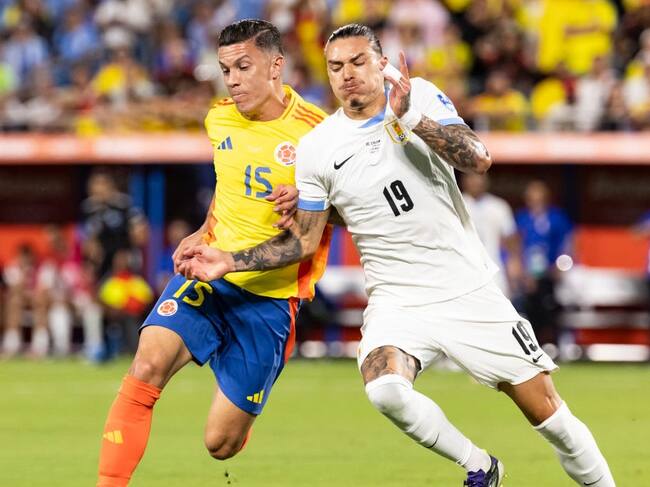 Matheus Uribe de Colombia se enfrenta a Darwin Núñez de Uruguay en partido de Copa América 2024. Foto: Getty Images. / Steve Limentani/ISI Photos