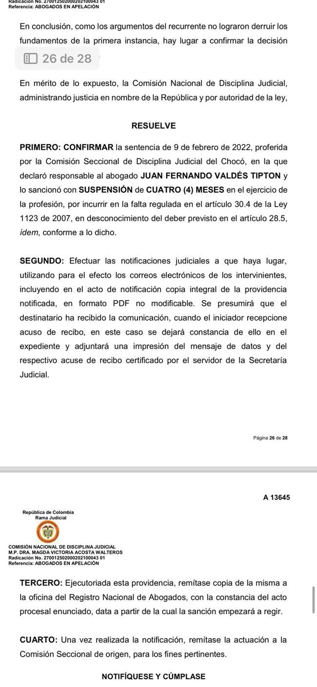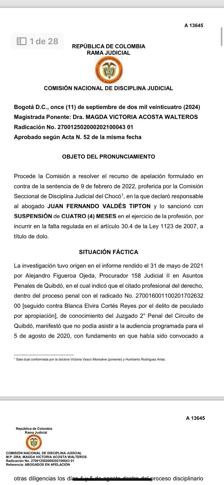 El proceso también vinculó al abogado de Cortés, quien mintió al justificar su ausencia en una audiencia programada para agosto de 2020, alegando un conflicto de horario con otro caso. La Comisión Seccional de Disciplina Judicial del Chocó determinó que la justificación era falsa, pues la citación a la que aludió ocurrió un día antes.